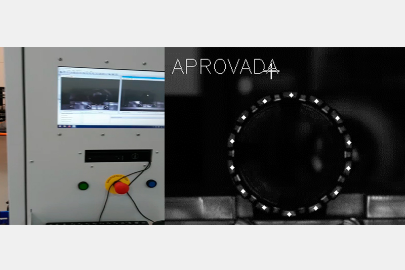 Assim, o sistema aprova ou reprova automaticamente cada peça, e remove as peças com defeito, garantindo que apenas as aprovadas avancem. O software ainda controla os resultados e informa a contagem das peças aprovadas.
